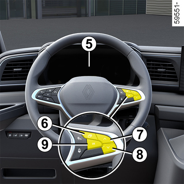 menu, then press switch 9 OK; - repeatedly press control 7 or 8 to reach the "DRIVING ASSIST" menu, then press switch 9 OK;