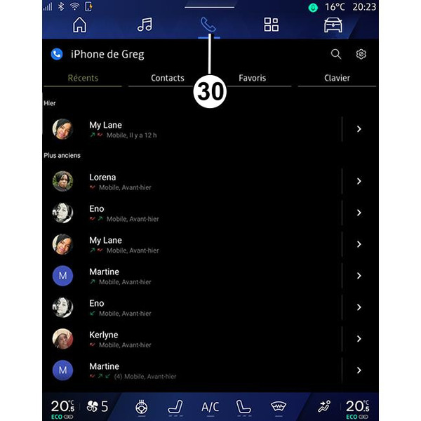 , which can be accessed using button 30, provides access to Calls, the Phonebook and other telephone functions connected to the multimedia system.