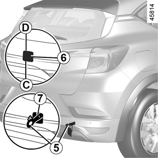 Tighten the towing hitch 5 fully: first by hand until it stops, then finish by locking it with the wheel brace or, depending on the vehicle, the lever.