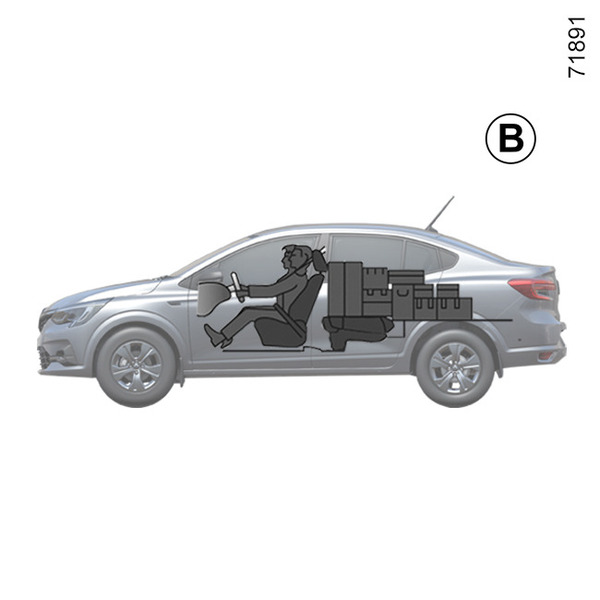 the front seats when the rear seats are folded down Rear seats (example B).