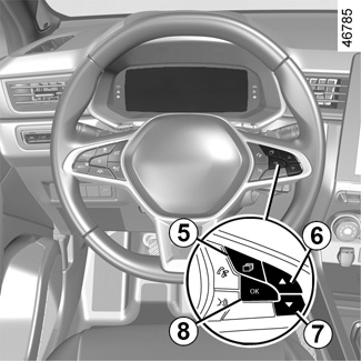 - apăsaţi în mod repetat comanda 6 sau 7 pentru a ajunge la meniul „ASIST. LA CONDUS”. Apăsaţi contactorul 8 OK;